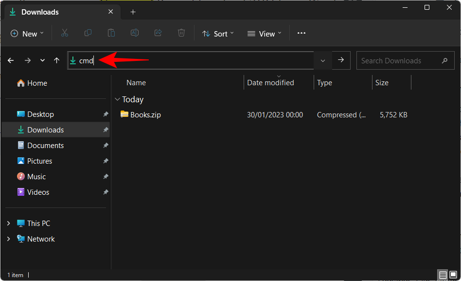 - 打开文件资源管理器并导航到压缩文件。然后在地址栏内单击并按下按钮以清除地址栏。