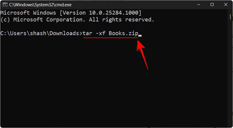 Windows 的命令终端(如命令提示符)也可用于提取文件。2018 年,Windows 将 TAR 命令工具添加到命令提示符中,以便用户可以使用单个命令提取文件。以下是使用它在 Windows 11 上提取文件的方法: