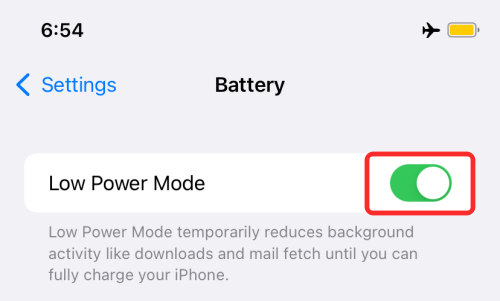 - 要禁用低功耗模式,请转到“电池>”设置“,然后关闭”低电量模式“开关。