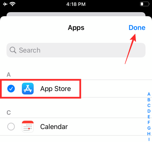 - 从这里,选择要为所选焦点模式列入白名单的应用程序。选择要列入白名单的应用程序后,点击右上角的完成。