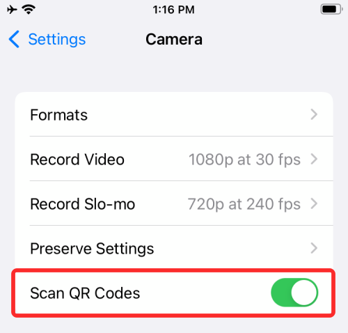 这很重要,因为关闭该功能会阻止 iPhone 的相机读取您指向的代码。仅当使用方法 1、2 和 3 时,才需要执行此步骤。如果您使用的是此处列出的任何其他方法,则无需在 iPhone 的相机设置中打开“扫描二维码”选项。