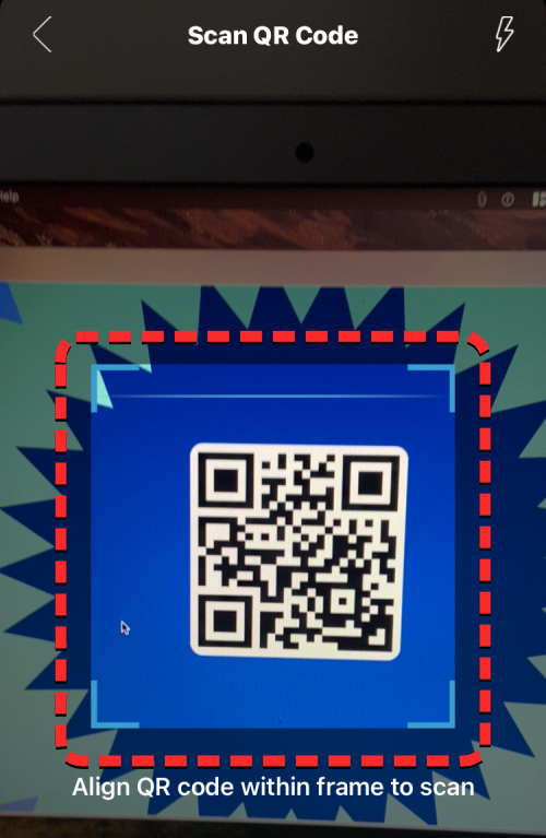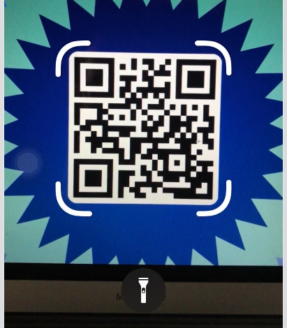 - 在下一个屏幕上,您将看到一个方形框和底部的火炬图标。要从代码中获取所有信息,请将相机对准二维码并确保它保持在方框的约束范围内。