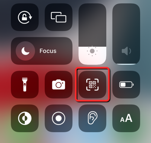 在配备主屏幕按钮的 iPhone 上:从任何屏幕的底部边缘向上轻扫。 - 当“控制中心”出现时,点击此屏幕内的“代码扫描器”快捷方式(类似于 QR 码的按钮)。