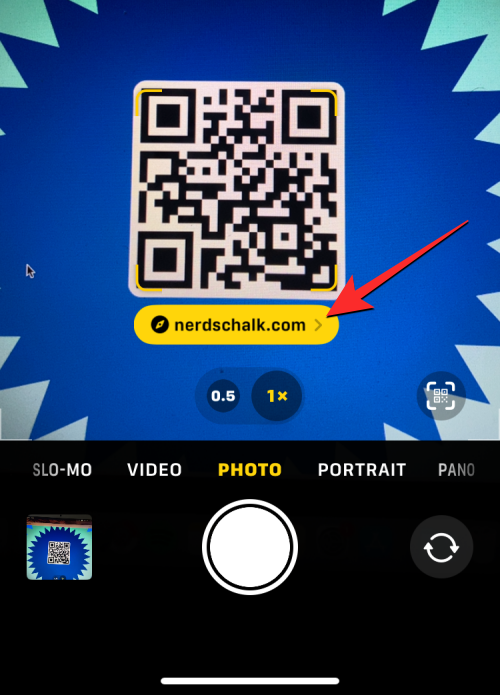 - 相机应用程序现在将在二维码中查找任何数据,当它找到时,您会在取景器代码下方的黄色框中看到一个片段。您可以点击此片段查看更多信息。在这种情况下,QR 码在代码段内显示一个链接。