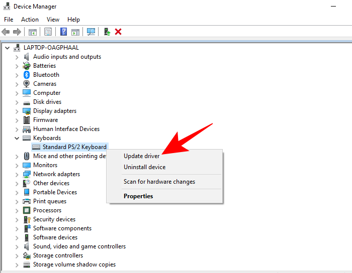 如果重新启动后键盘无法正常工作,则意味着您必须从设备管理器自行重新安装/更新驱动程序。但是,由于您可以仅使用鼠标完成执行此操作的步骤(如上所述),因此这应该不是问题。