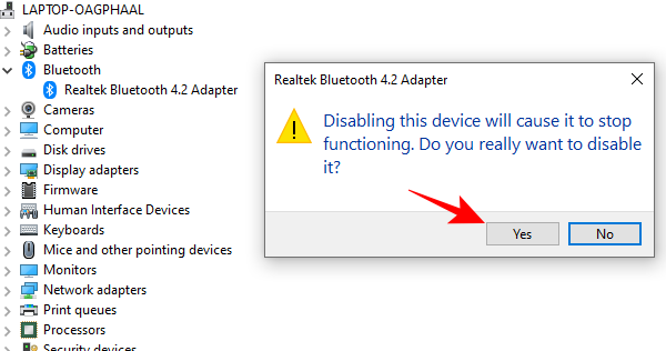 有时,只需禁用然后重新启用蓝牙软件即可使蓝牙再次运行。