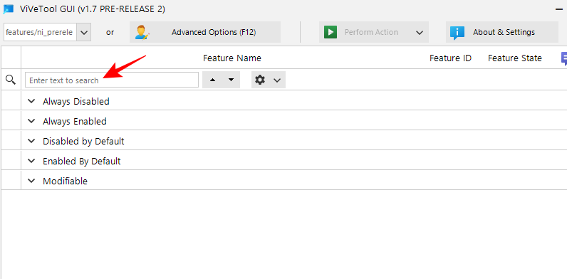 ViVeTool 还有一个 GUI 应用程序,可让您启用在特定版本中默认隐藏或关闭的各种 Windows 功能。从下面给出的链接下载: