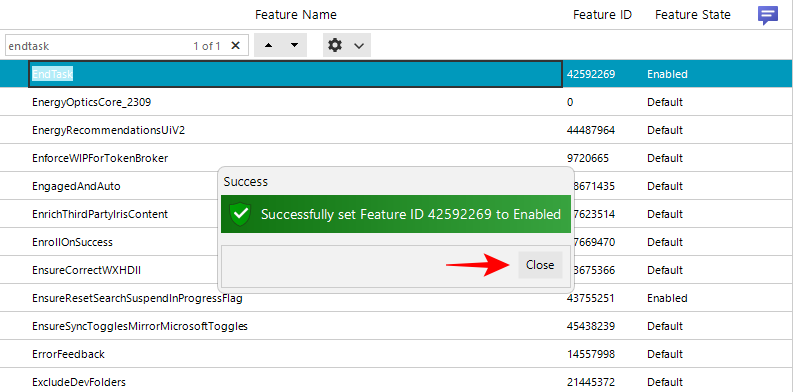 “结束任务栏”按钮的功能 ID 42592269。您可以使用此 ID 在 ViVeTool 的帮助下启用结束任务栏功能。请参阅上述指南中的方法 3 和 4。