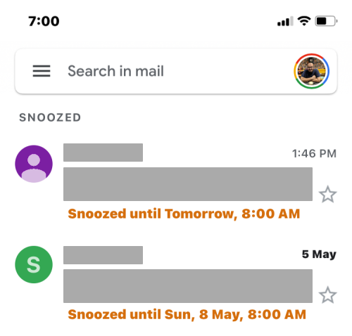 由于您仅在有限的时间内将其从收件箱中删除,因此延后的电子邮件将在延后持续时间结束后重新出现。与静音和存档选项相比,Snooze 的另一个优势是,所有暂停的邮件都会显示在它们自己的专用部分内,即 Snoozed 文件夹内。您无需从“所有邮件”收藏夹中手动搜索它们中的每一个来访问它们或将它们移回收件箱。