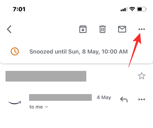 - 如果您想一次取消暂停一堆电子邮件,请长按其中任何一封消息,然后开始选择要取消暂停的消息。选择消息后,点击右上角的 3 点图标。
