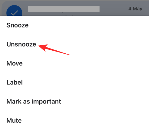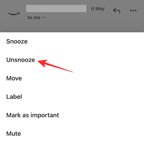 所选电子邮件现在将取消暂停,并将重新出现在您的收件箱中。 - 您还可以在从“延后”文件夹中打开电子邮件后取消暂停。要取消贪睡,请单击右上角的取消贪睡。