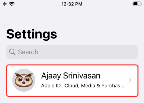 - 要打开“联系人同步”,请在 iPhone 上打开“设置”应用,然后在顶部选择您的姓名/Apple ID。