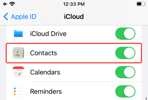 - 在下一个屏幕上,向下滚动并打开“联系人”开关。