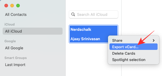 - 或者,您也可以通过转到“文件”>>“导出”>“导出 vCard”菜单栏来访问导出选项。