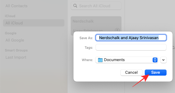- 在显示的对话框中,输入联系人文件的名称,然后选择要保存该文件的位置。完成此操作后,单击“保存”。