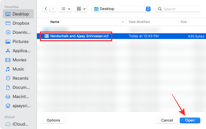 - 接下来,您必须找到并选择从iCloud下载的vCard文件。