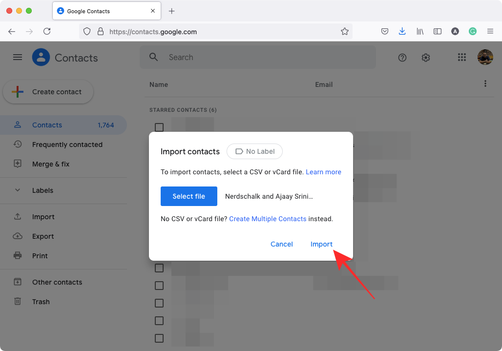 选定的联系人将以 VCF 格式保存,您可以按照以下步骤将它们导入 Google。
