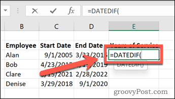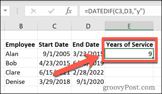 如何使用 DATEDIF 在 Excel 中计算服务年限