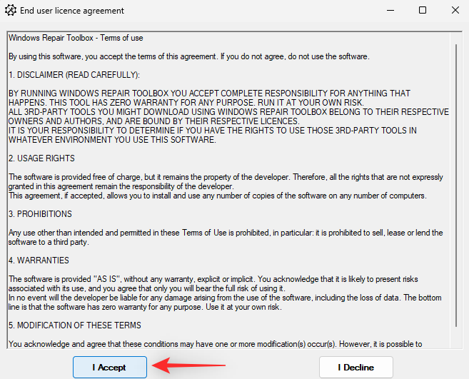 使用上面的链接下载 Windows 修复工具箱。下载后,解压缩存档并使用 .exe 文件启动 Windows 修复工具箱。