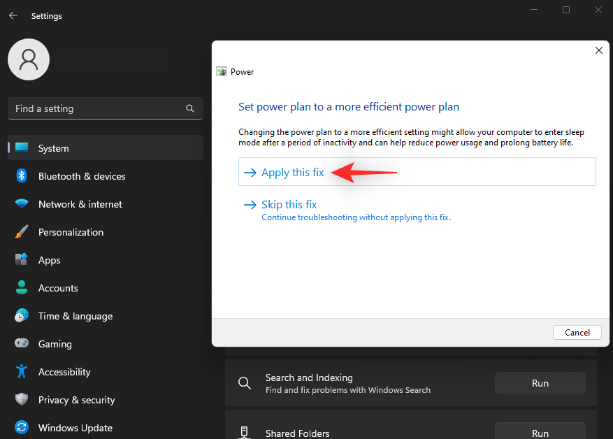 现在找到与您的问题相关的疑难解答。对于此示例,我们将使用电源疑难解答。找到后,单击它旁边的运行。