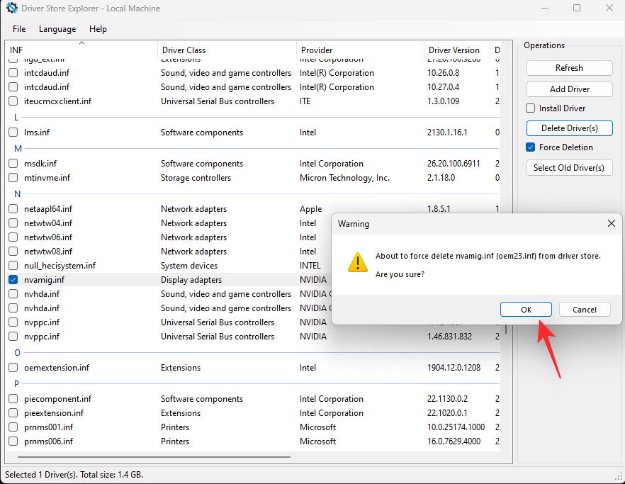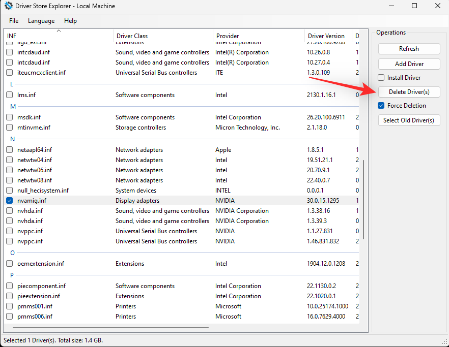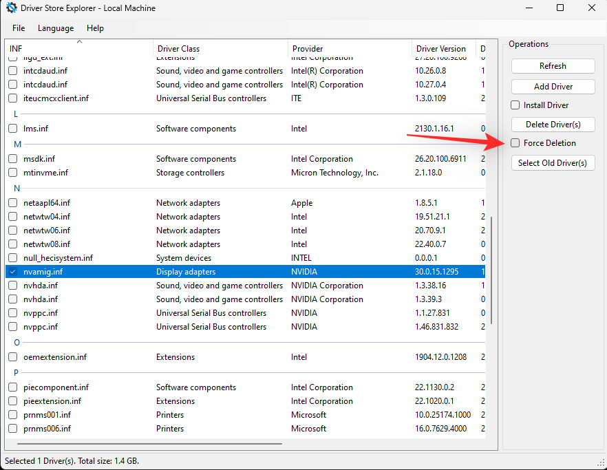查找我们之前为相关设备记下的.inf文件名。如果您发现任何内容,请选中相同的框。如果您找到该设备的多个驱动程序,请选中您 PC 上所有驱动程序版本的复选框。