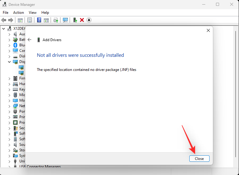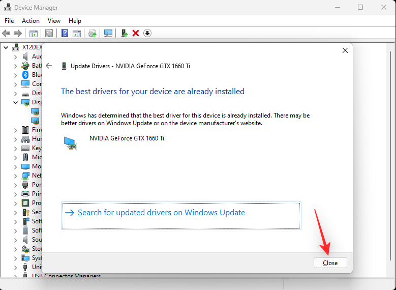 Windows 现在将从所选位置为您的 PC 查找并安装所有相关驱动程序。完成后,单击 关闭。