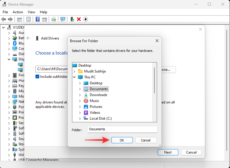 现在从本地存储中选择驱动程序的相关文件夹。完成后单击 确定。