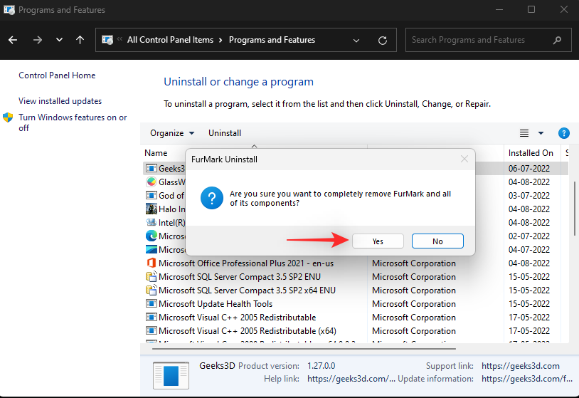 所选程序现在将从您的系统中卸载。如果该程序有专门的卸载程序,您可以按照屏幕上的说明从您的 PC 中删除该程序。继续删除您怀疑会导致 PC 出现问题的其他程序。