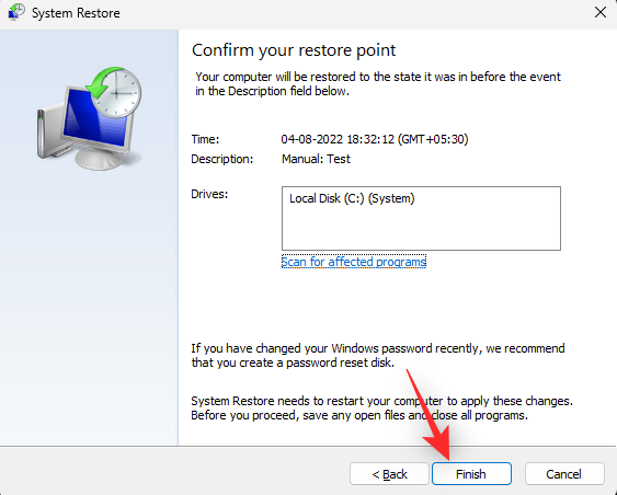 Windows 现在会将您的 PC 还原到所选的还原点。完成后,如果没有自动重新启动您的电脑。您现在将通过将 Windows 11 恢复到以前已知的工作状态来修复它。