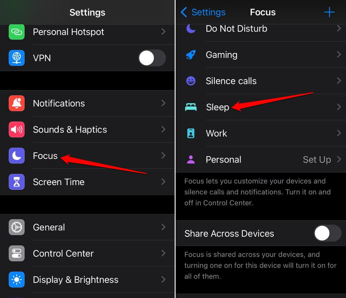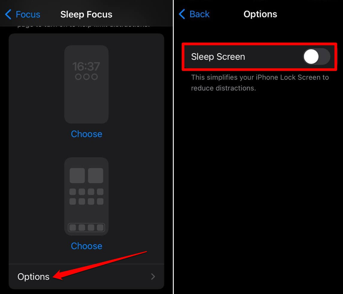 - 通过点击旁边的开关关闭睡眠屏幕功能。当睡眠焦点模式处于活动状态时,它将简化锁定屏幕。