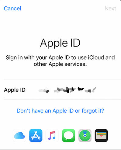 - 按照屏幕上的说明登录您的 Apple ID。