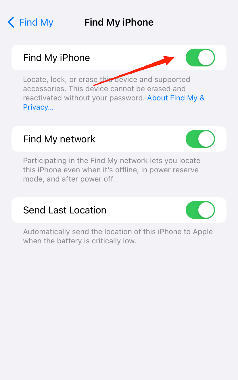 如果该选项已启用,请尝试禁用它,几秒钟后它将再次允许它。另外,不要忘记在启用“查找我的iPhone”后重新启动设备。