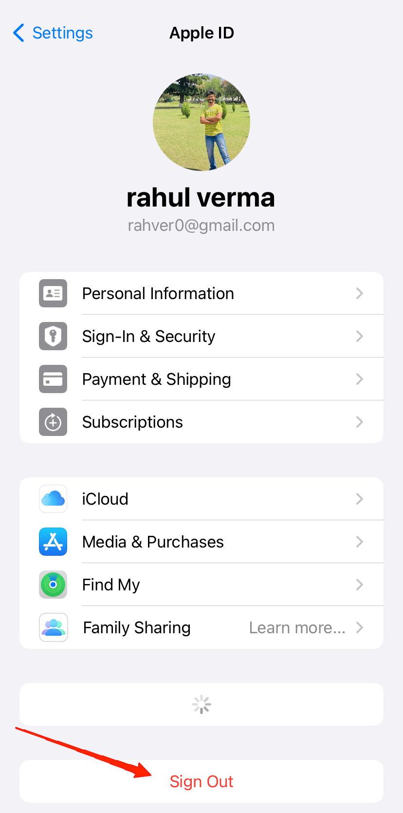 - 点击注销。这将让您退出 Apple ID。