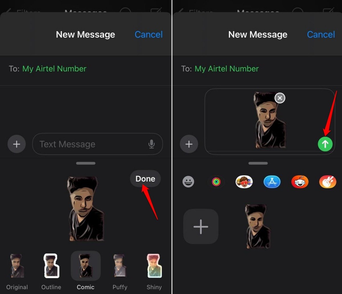 iPhone 重新启动后,打开“信息”应用并访问任何聊天。尝试在对话中发送实时贴纸,以检查该功能是否有效。