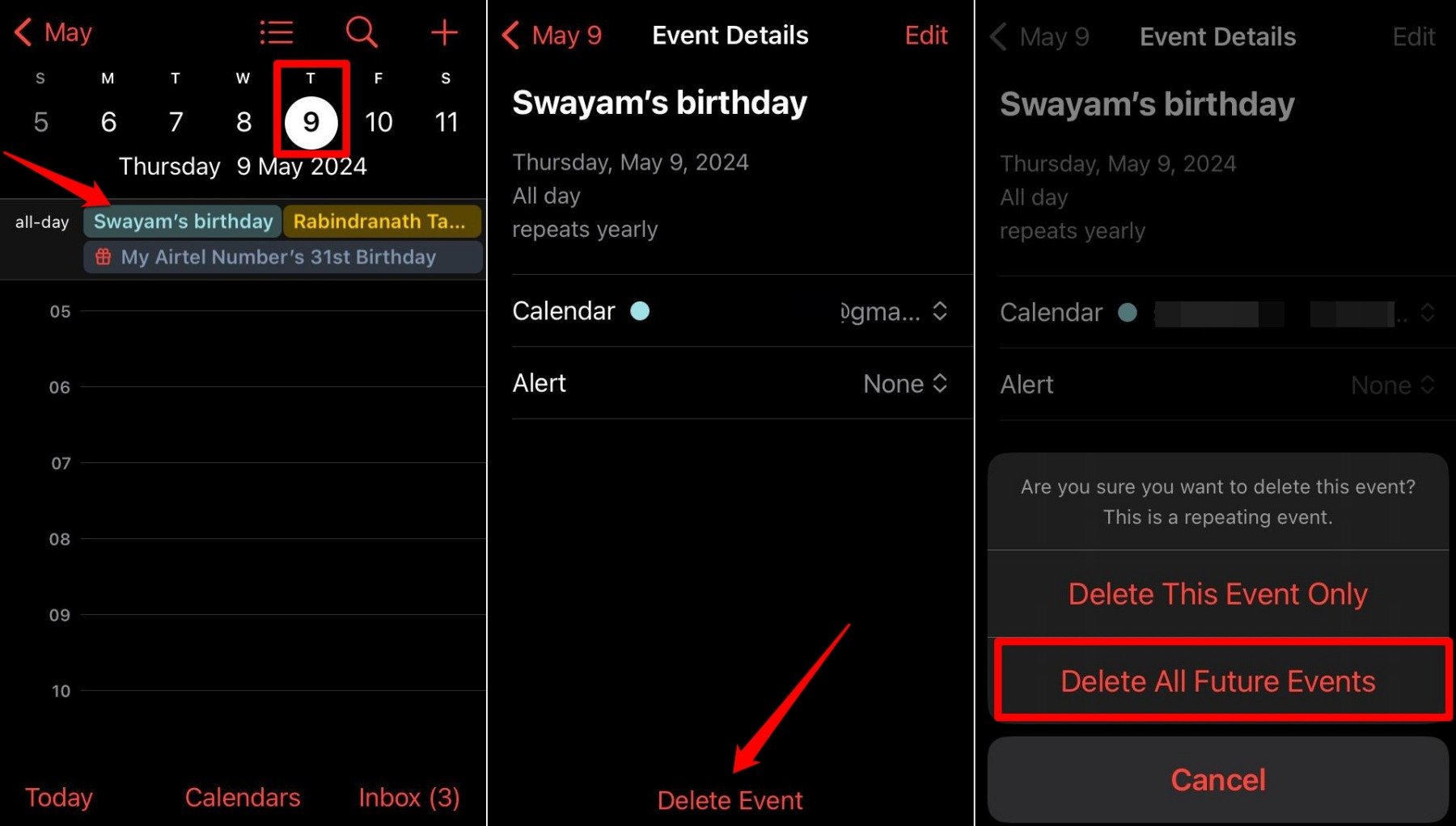 注意:除了生日,与此帐户关联的其他事件也将被隐藏。除非必要,否则建议不要隐藏事件,以防止查看与帐户关联的其他重要事件。