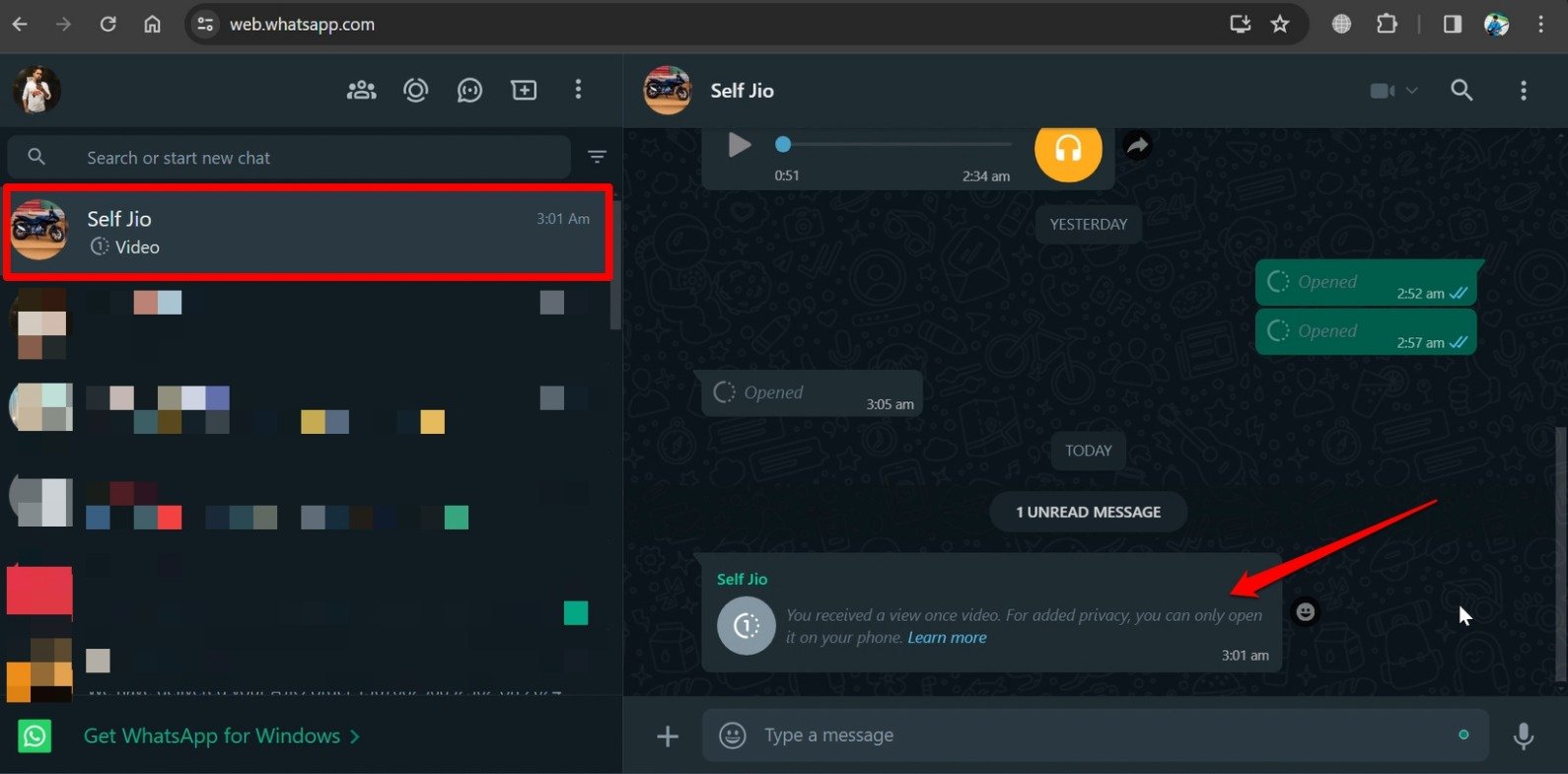 我尝试使用 WhatsApp Web 在我的 PC 上查看一次观看视频,但它不起作用。您也可以尝试这些步骤。