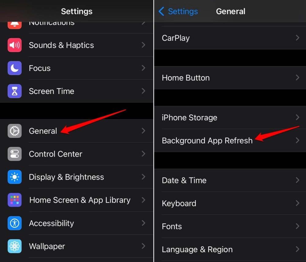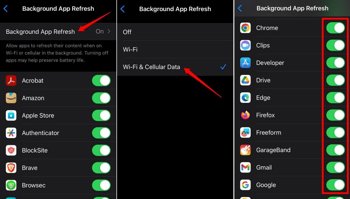 - 返回到“后台刷新”页面,并为未显示通知的应用打开它。