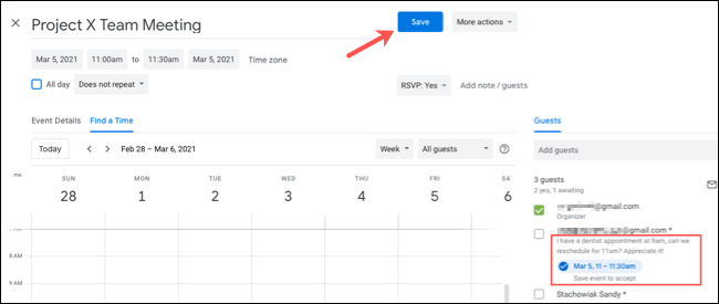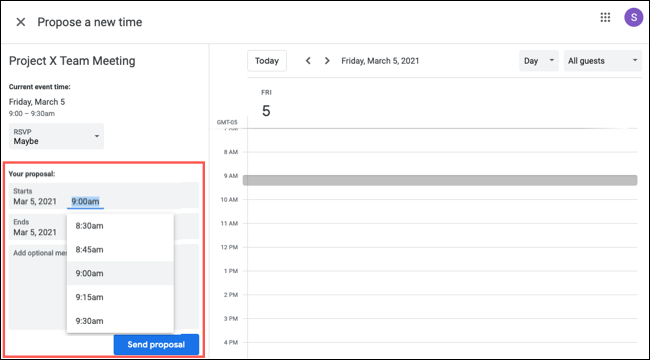 如果 在Windows 10 PC,Mac或Linux计算机上使用Google日历网站的首选方法 ,则可以轻松使用该功能来建议其他时间或日期。