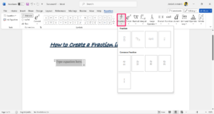 创建分数的另一种简单方法是在 Word 文档上使用方程式。它包括许多可用于文档报告的数字解决方案。以下是使用方程式创建分数的方法: