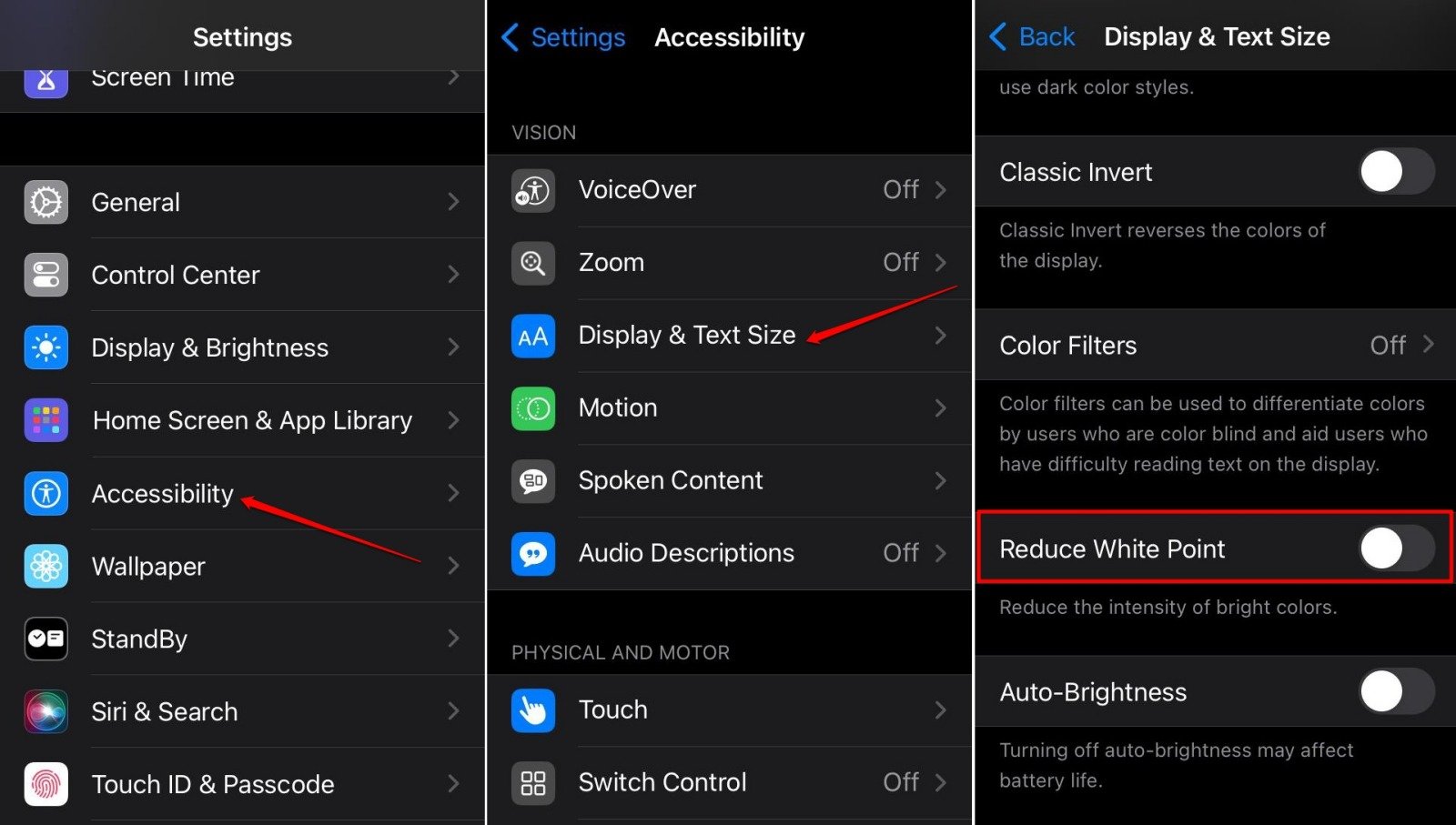 iOS 在辅助功能设置中具有控制鲜艳色彩强度的功能。它被称为减少白点。