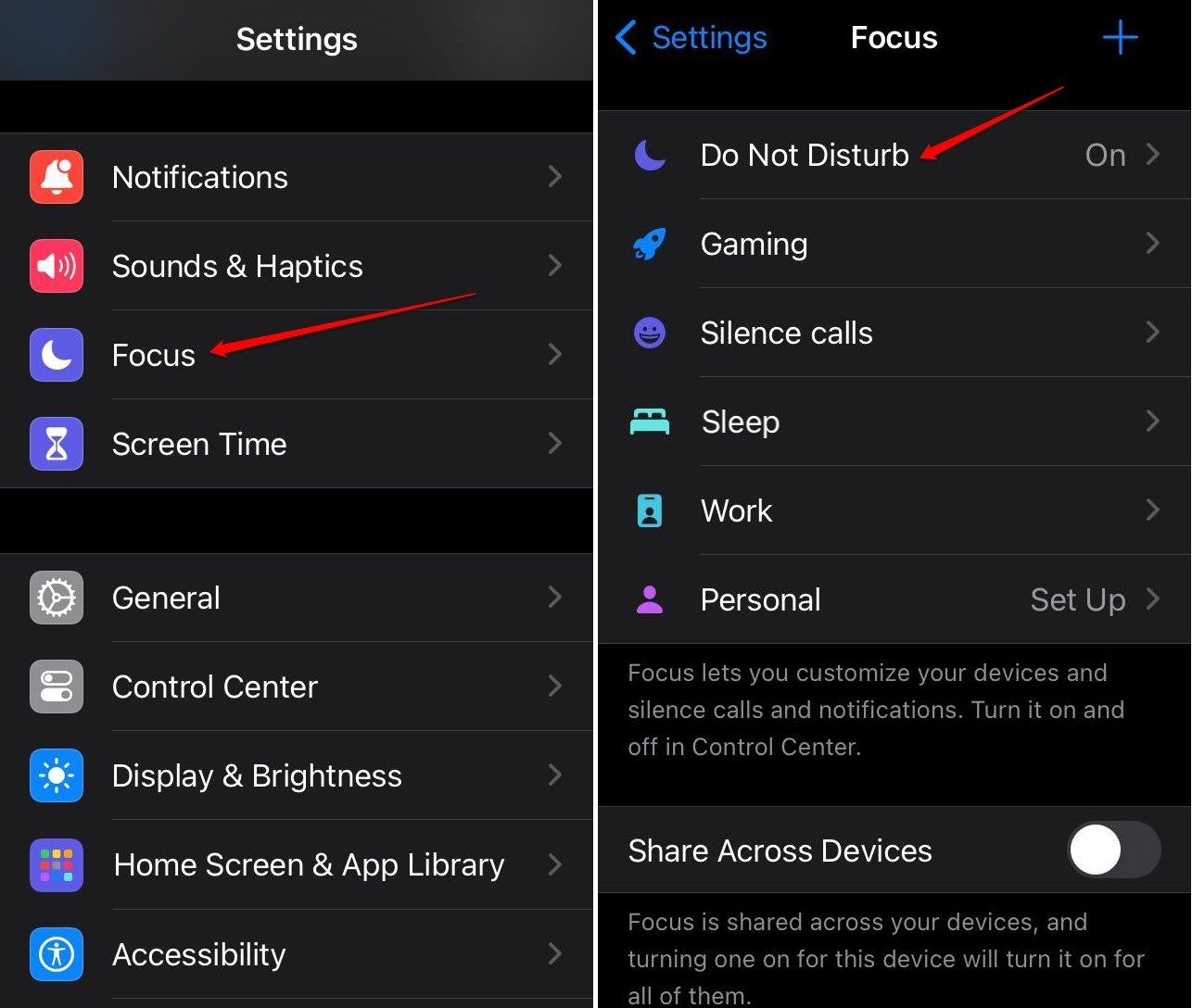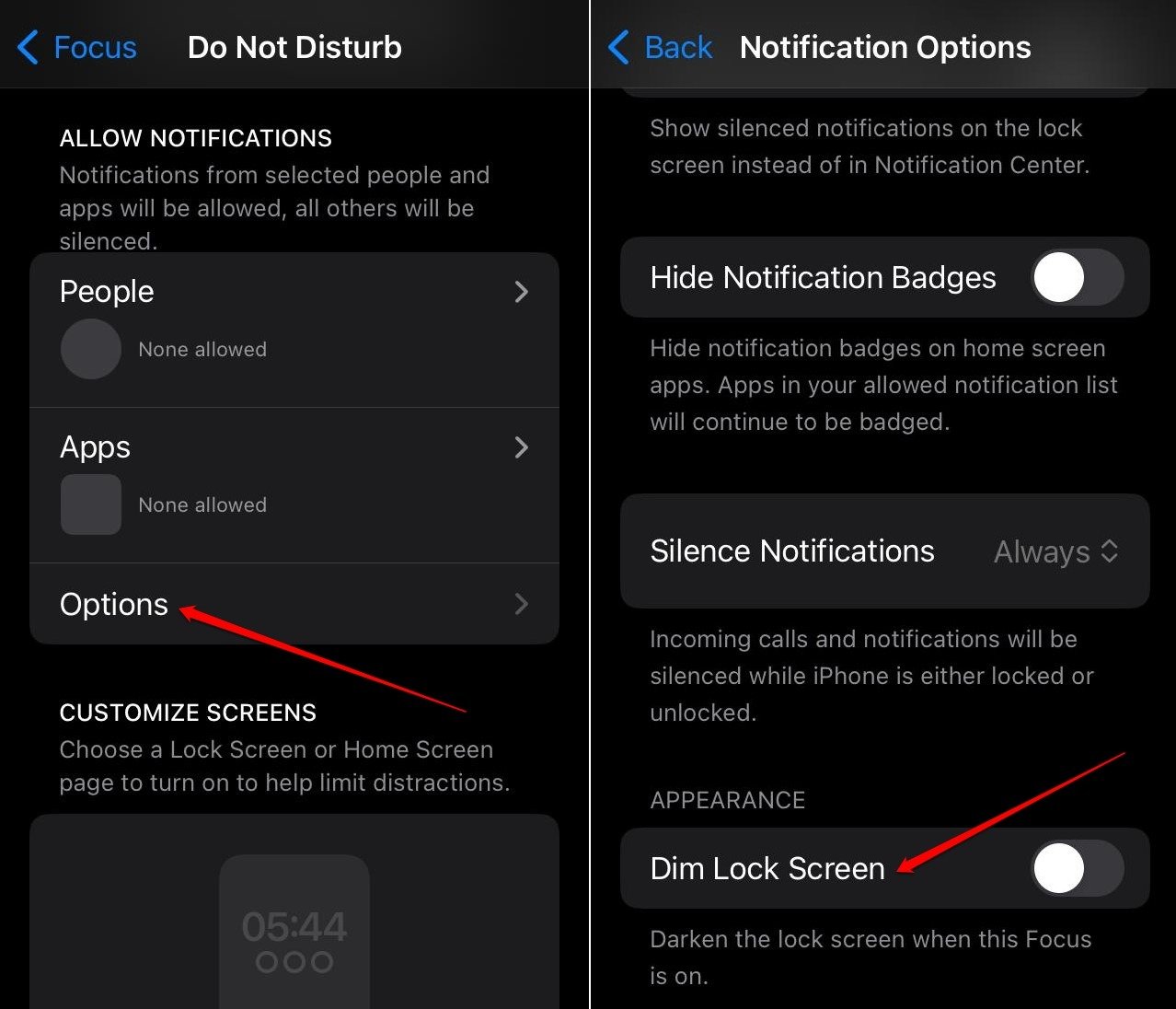 或者,您可以保持对焦模式处于活动状态,但关闭“昏暗锁定屏幕”功能。