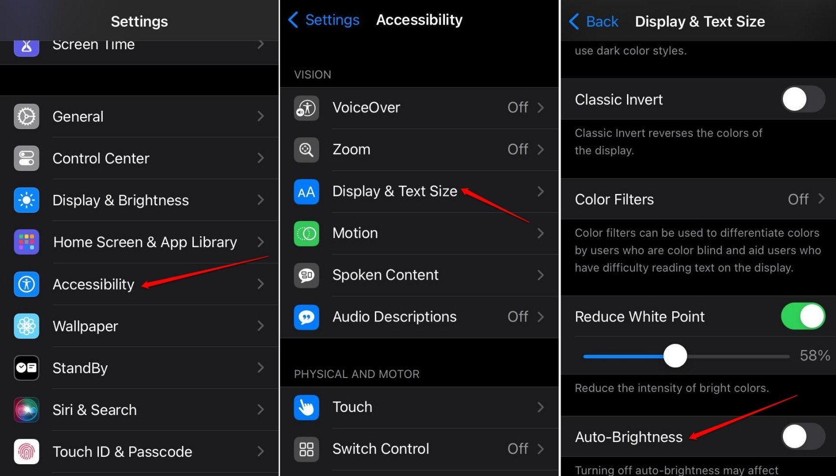 除了亮度突然增加外,用户还会遇到亮度水平的自动下降。这可能是由于 iOS 上的错误、自动亮度功能、更高的色彩强度或低功耗模式的激活而发生的