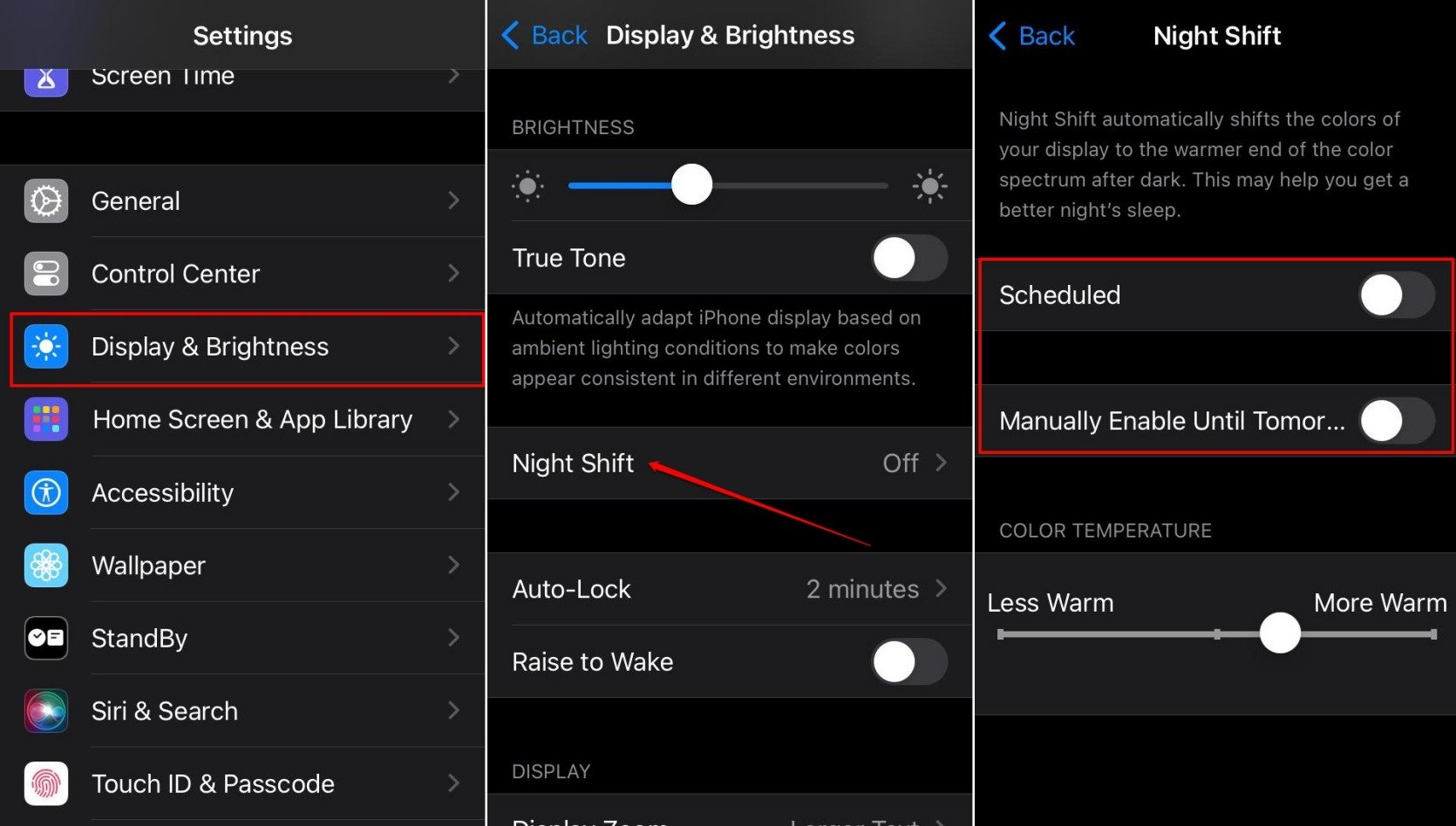 但是,如果在白天启用夜览,在明亮的日光下,较暖的色调将使您难以查看屏幕内容。