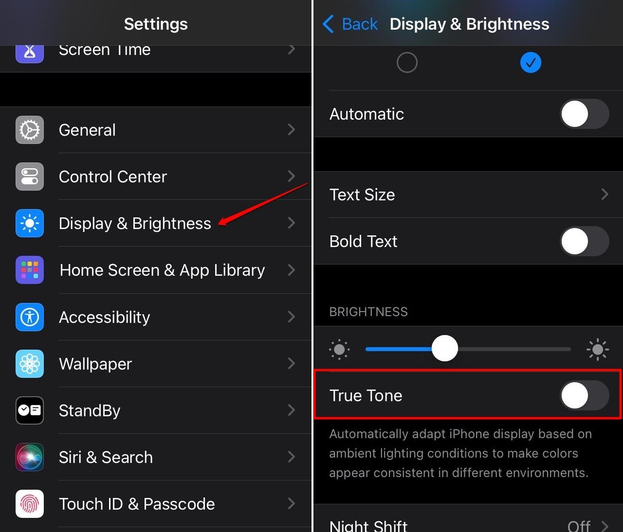 即使是 iOS 上的 True Tone 显示屏也能提供丰富的视觉体验。自动亮度和真实色调可以提高设备的亮度。它可能会导致用户的眼睛不适。