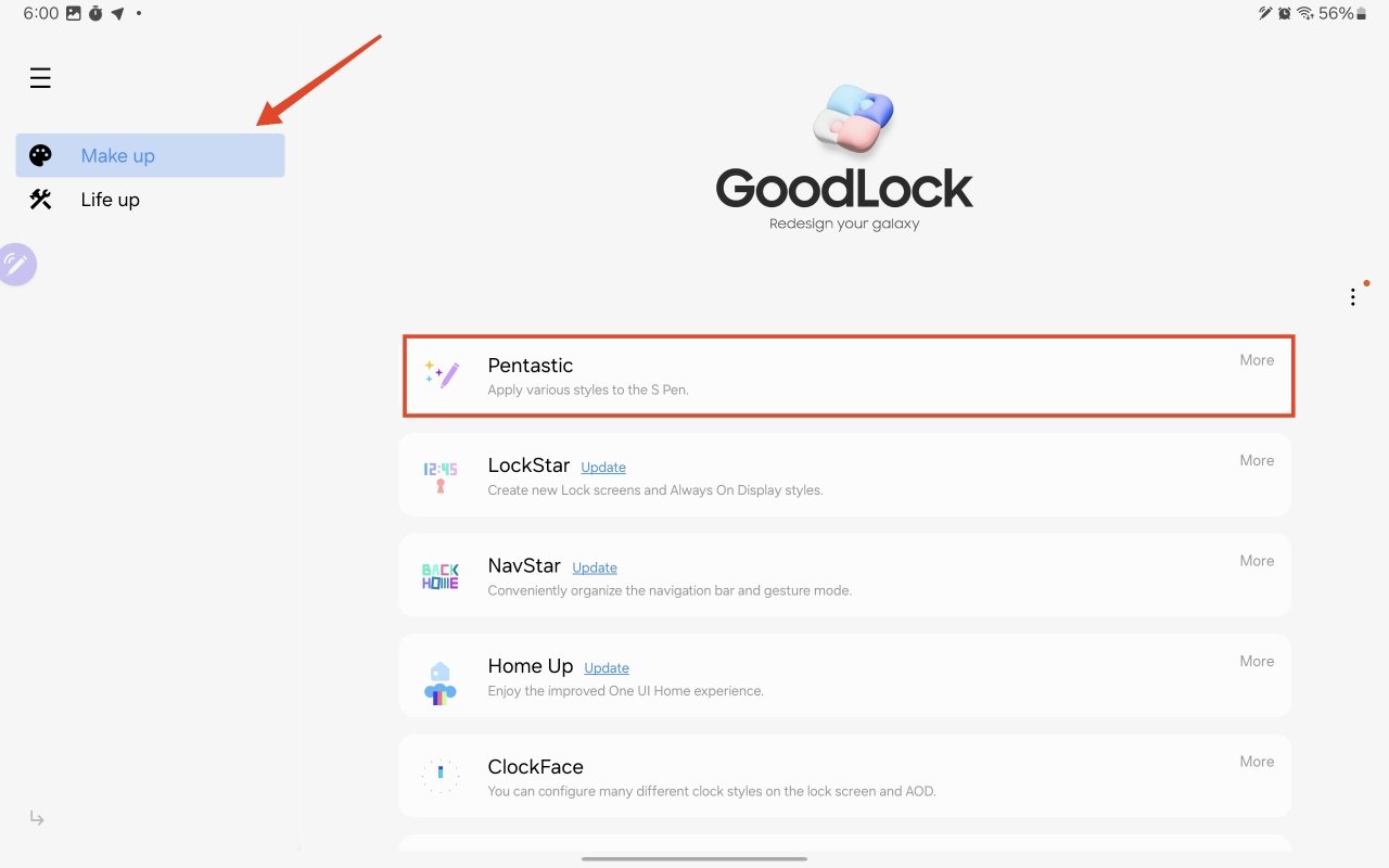您可以使用 Pentastic 自定义您的 S Pen,以获得更具吸引力和定制的体验。Pentastic 是“化妆”选项卡中的 Goodlock 模块。您可以在设备上从 Galaxy Store 或 Google Play Store 安装 Goodlock。
