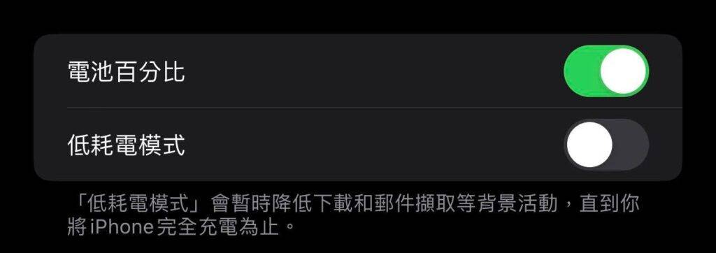 启用方法是到「设定」内的「电池」,启动「电池百份比」选项。完成后就可以看到iOS 的状态列(Status Bar)出现电池百份比数值。