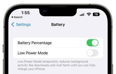可以在“电池”部分的“设置”应用中打开和关闭电池百分比。电池百分比功能似乎在大多数带有缺口的 iPhone 上可用,但它似乎不是iPhone 12 mini、iPhone 13 mini、iPhone 11或iPhone XR 的选项,可能是由于空间限制。