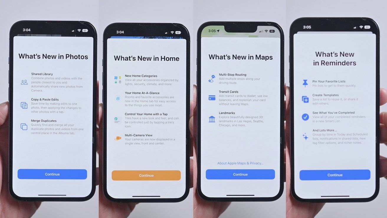 最后,主页、照片、地图和提醒都有新的闪屏来宣传他们的新功能。