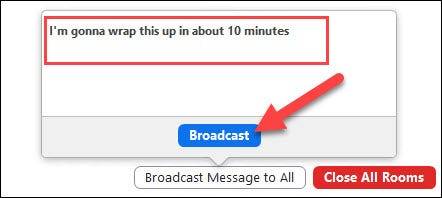 分组讨论室发生时,您可以单击工具栏上的按钮以调出菜单。在这里,您可以“向所有人广播消息”。