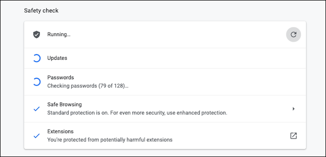 Google Chrome浏览器将启动“安全检查”测试。根据您拥有的浏览数据量,这可能需要花费几秒钟到几分钟的时间。